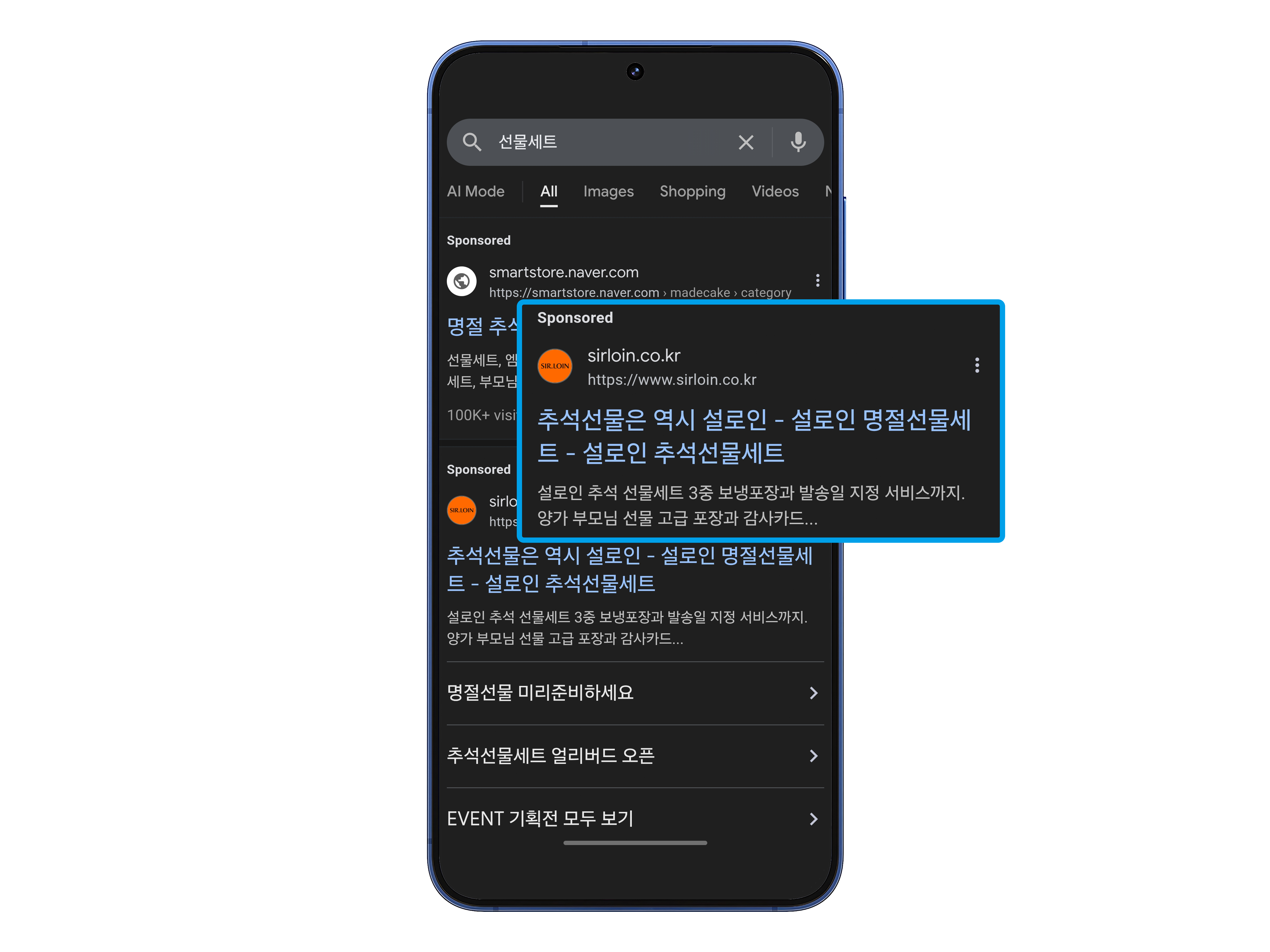 국내외 포털 사이트 내 키워드 검색 시 노출 되는 광고로 포털 사이트 상단에 노출됩니다.