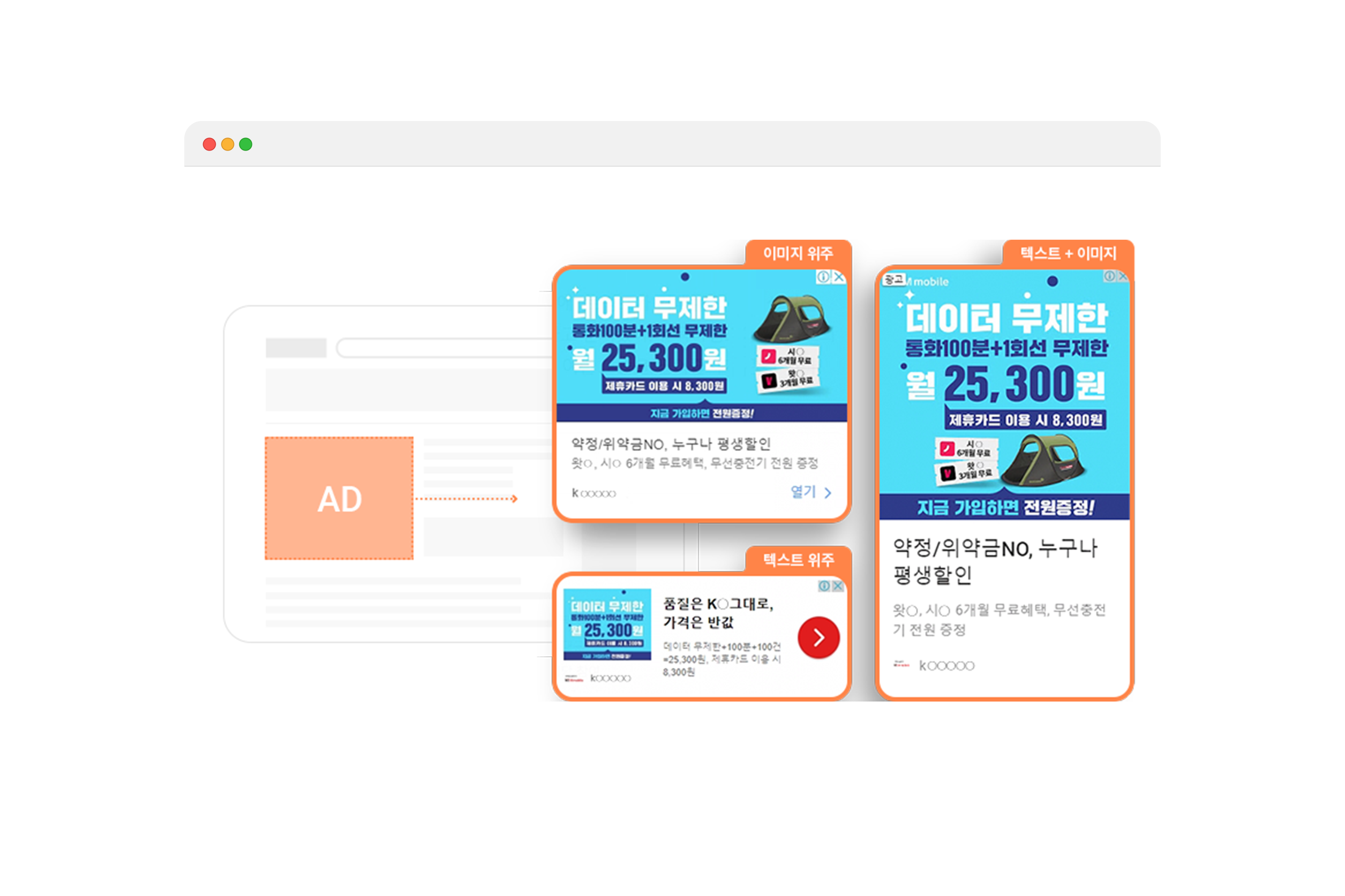 시각적 요소를 강조한 이미지형 광고로 다양한 포털 사이트, 언론사, 커뮤니티 등에 노출 가능합니다.