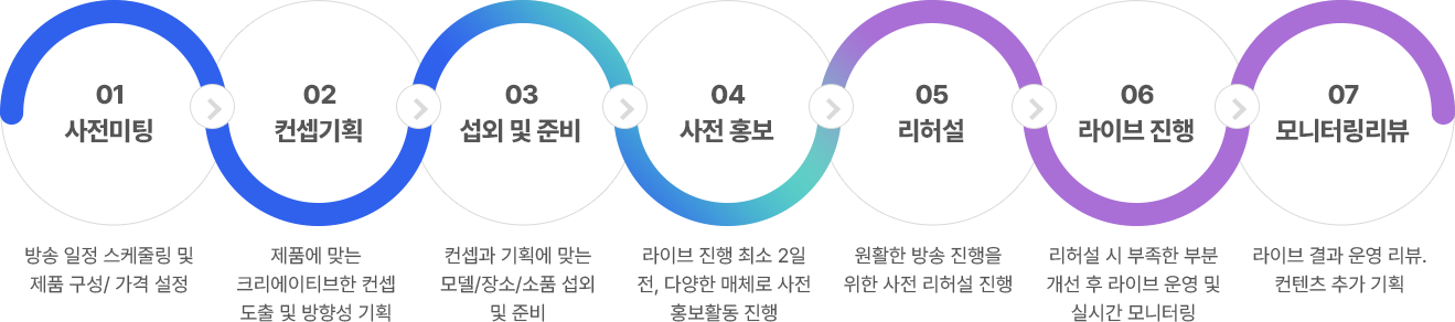 국내 TOP 쇼호스트 보유 최고 실력의 전문 쇼호스트와 연예인, 모델, 인플루언서 등 다수 MCN과의 협업 진행으로 다이렉트 섭외 가능