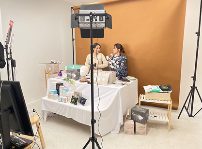 고사양 멀티 카메라 등 전문 방송 장비 사용 크로마키, 배너, 영상 등 다양한 그래픽 연출까지! 수준 높은 방송을 위한 라이브커머스 전문 방송 장비 보유